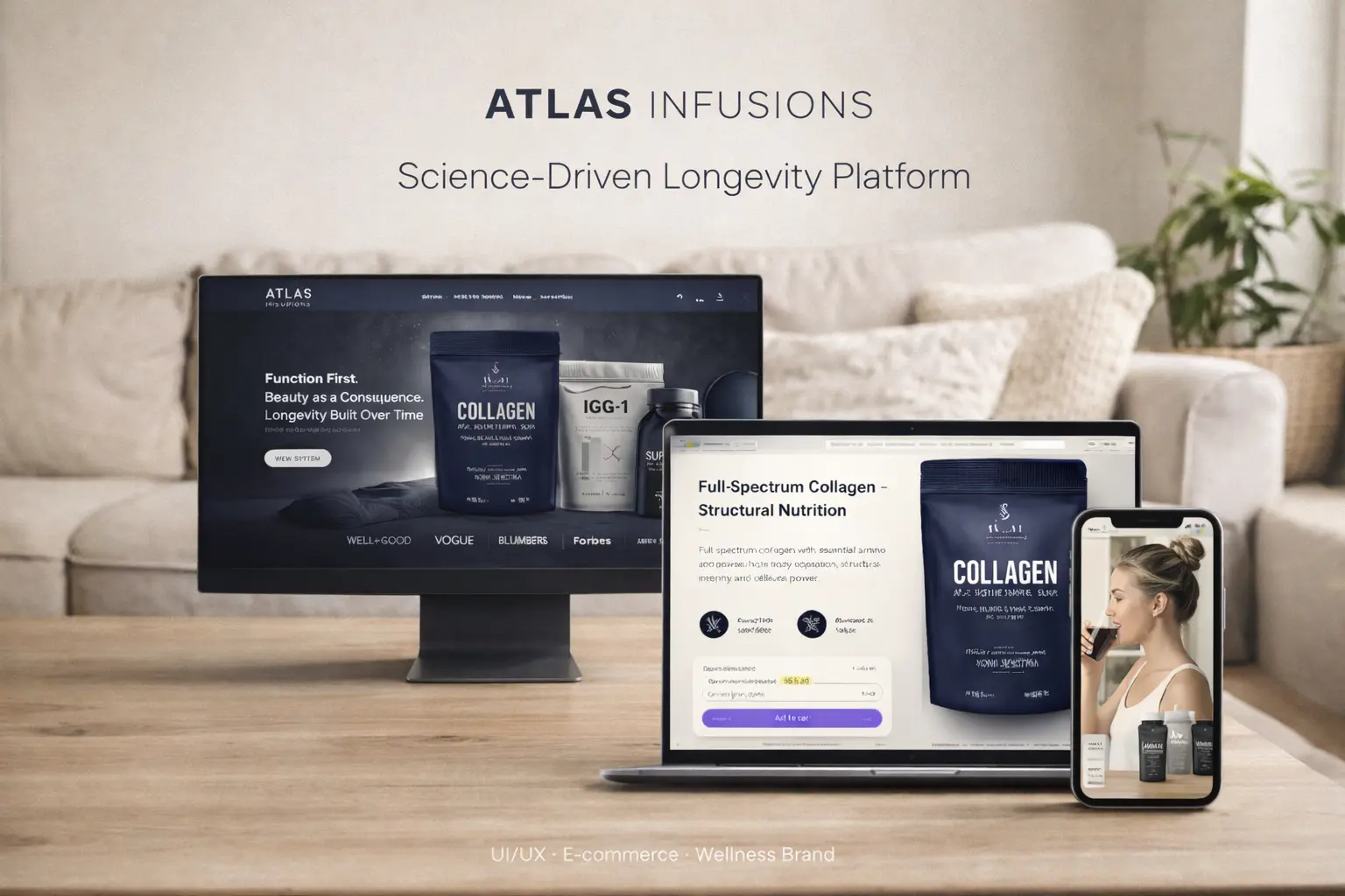 Atlas Infusions is positioned as a coordinated biological system — not standalone supplements — designed to support foundation, structure, and metabolic efficiency through synergistic use. We developed the content and presentation to reflect this vision, shifting the focus from promotional product marketing to an integrated system narrative.